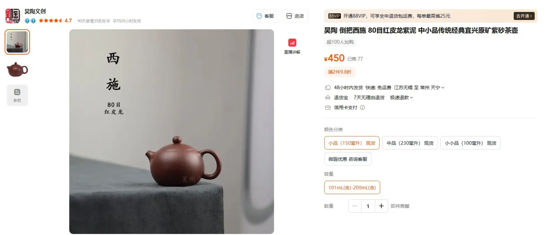 A typical standard Xishi on Taobao selling at ¥450(about $64)