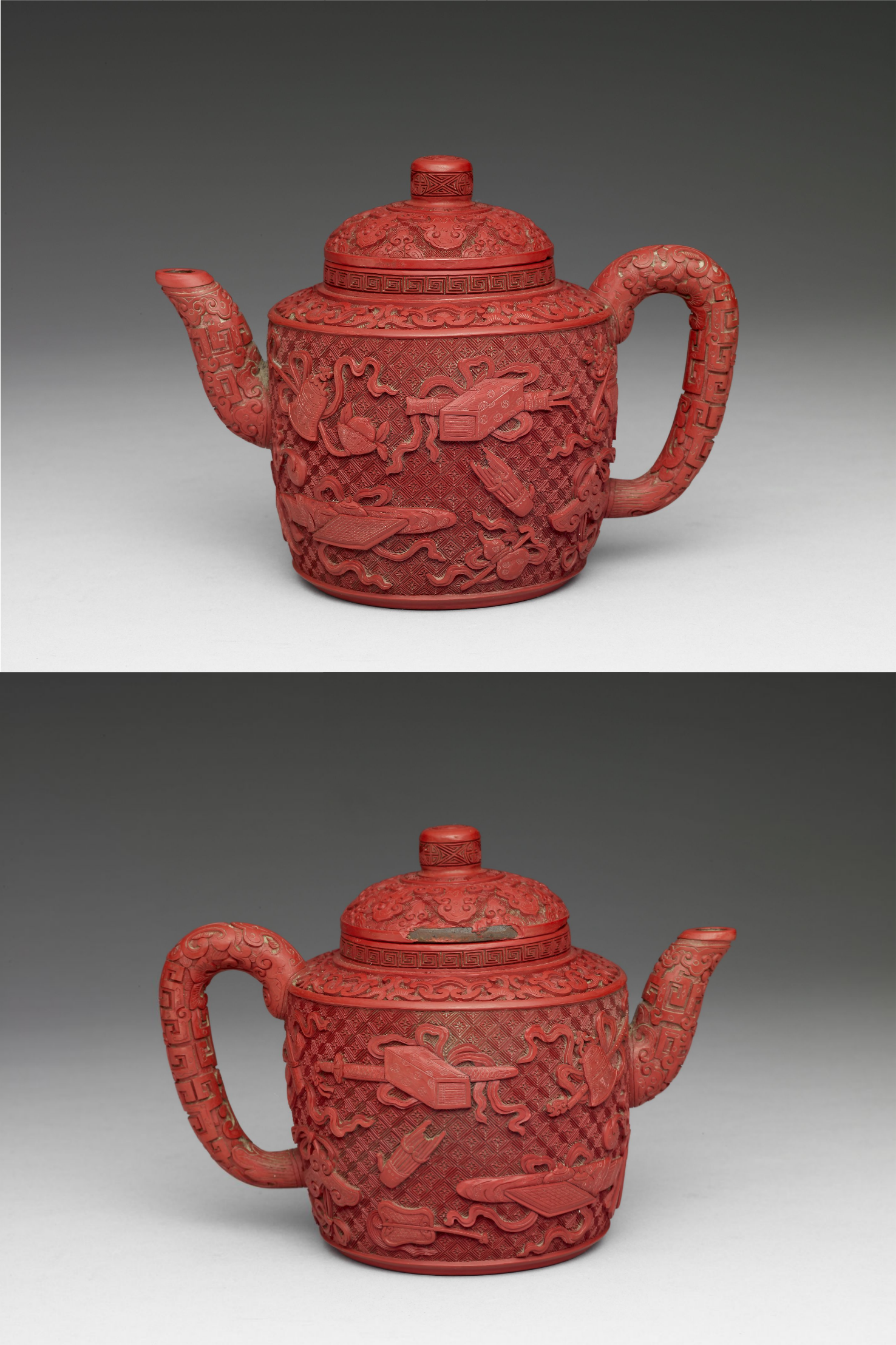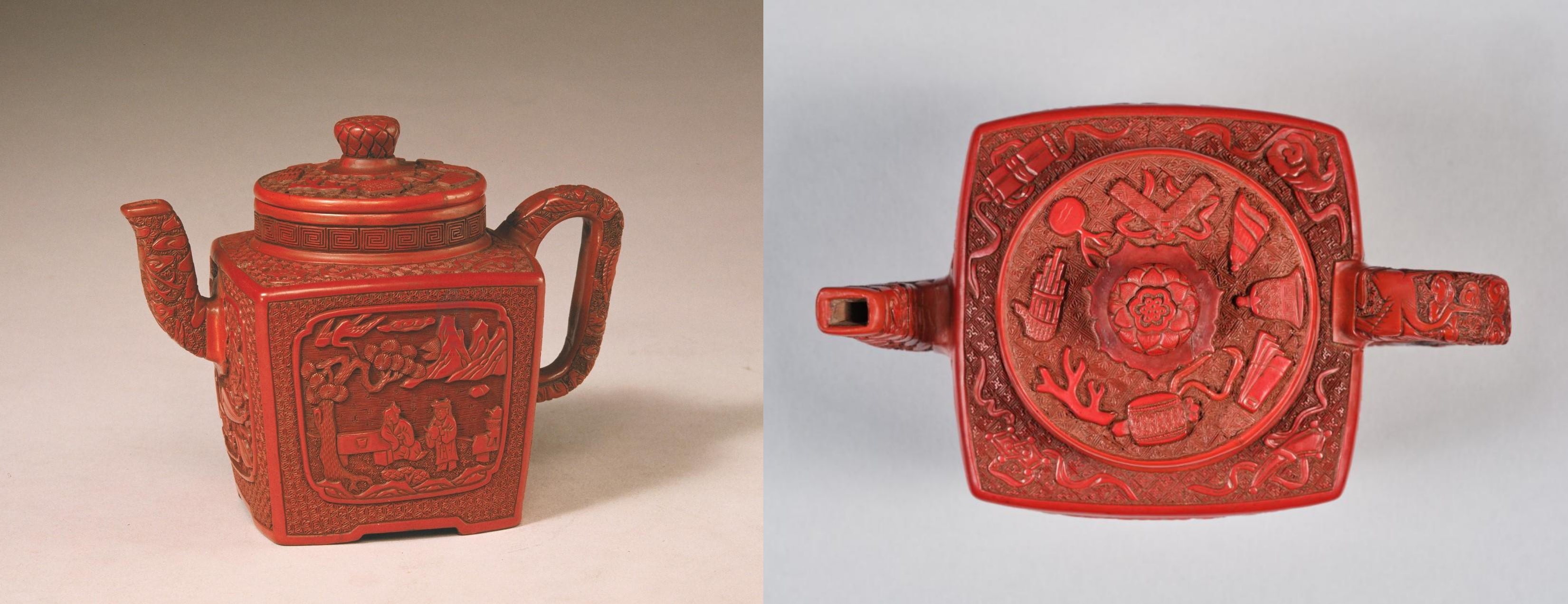 Imperial Zisha Teapot with Carved Red Lacquer, Kangxi Period