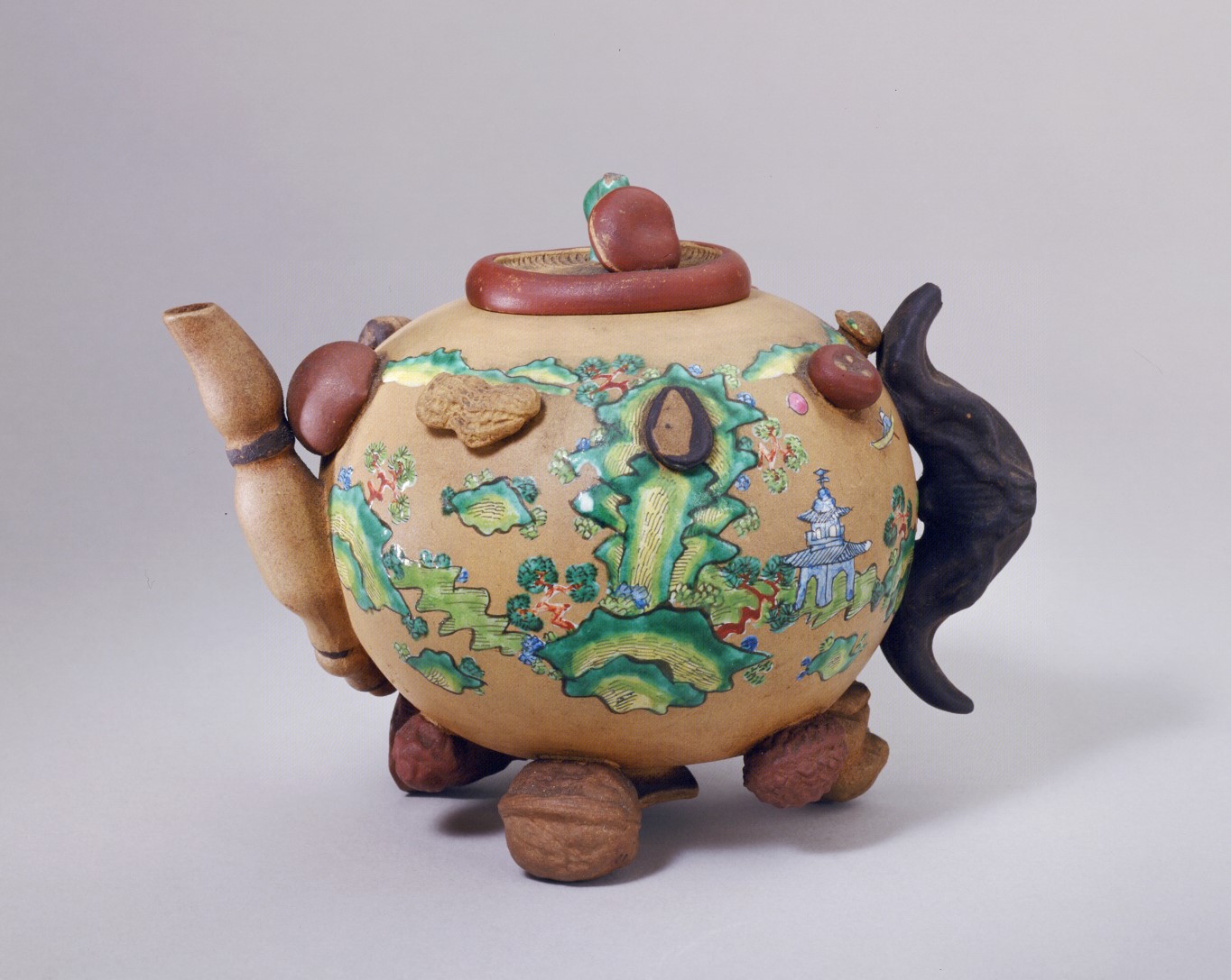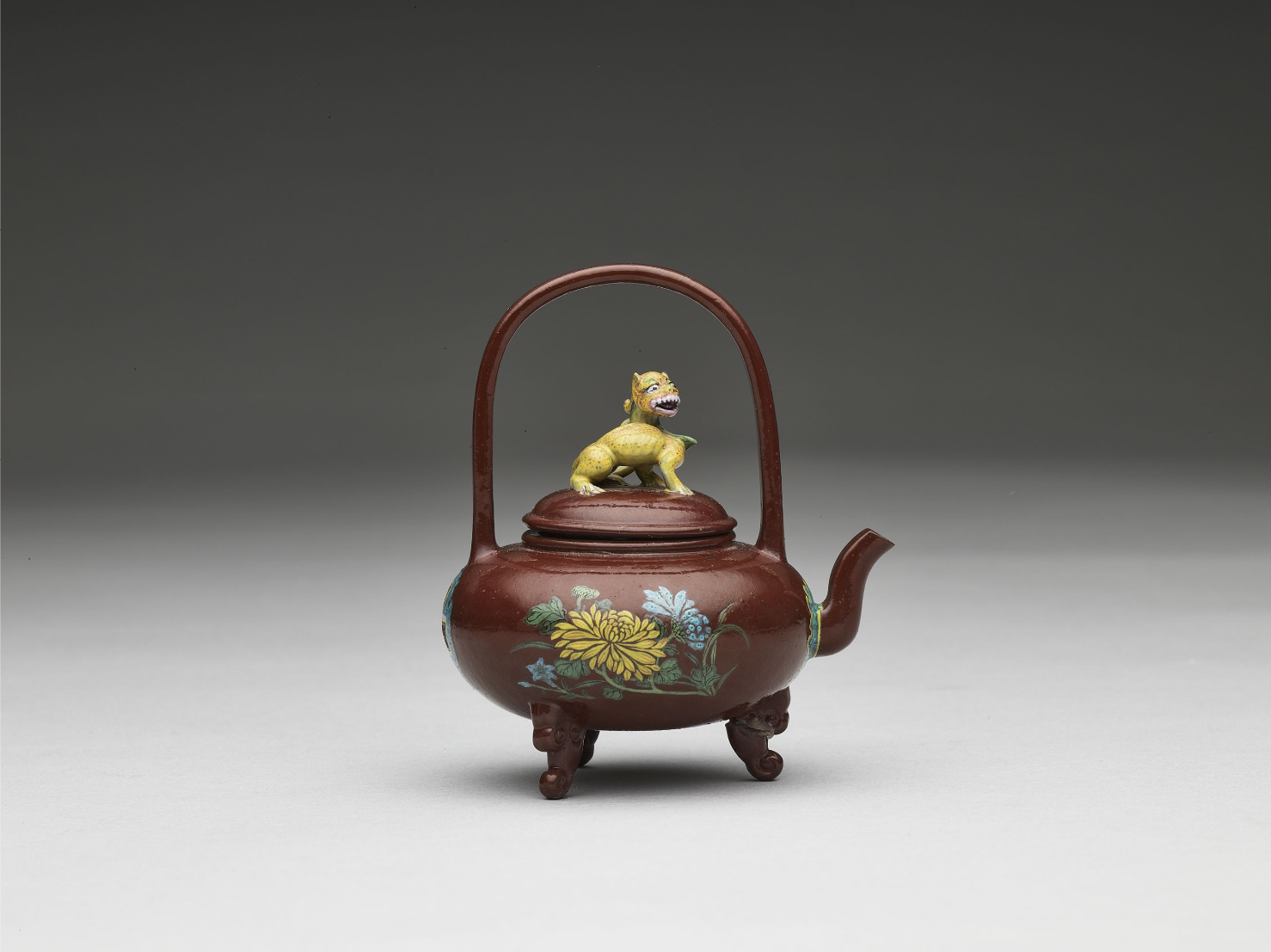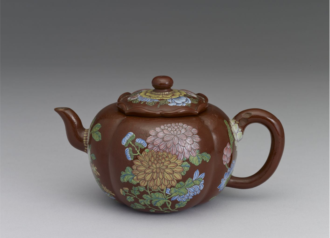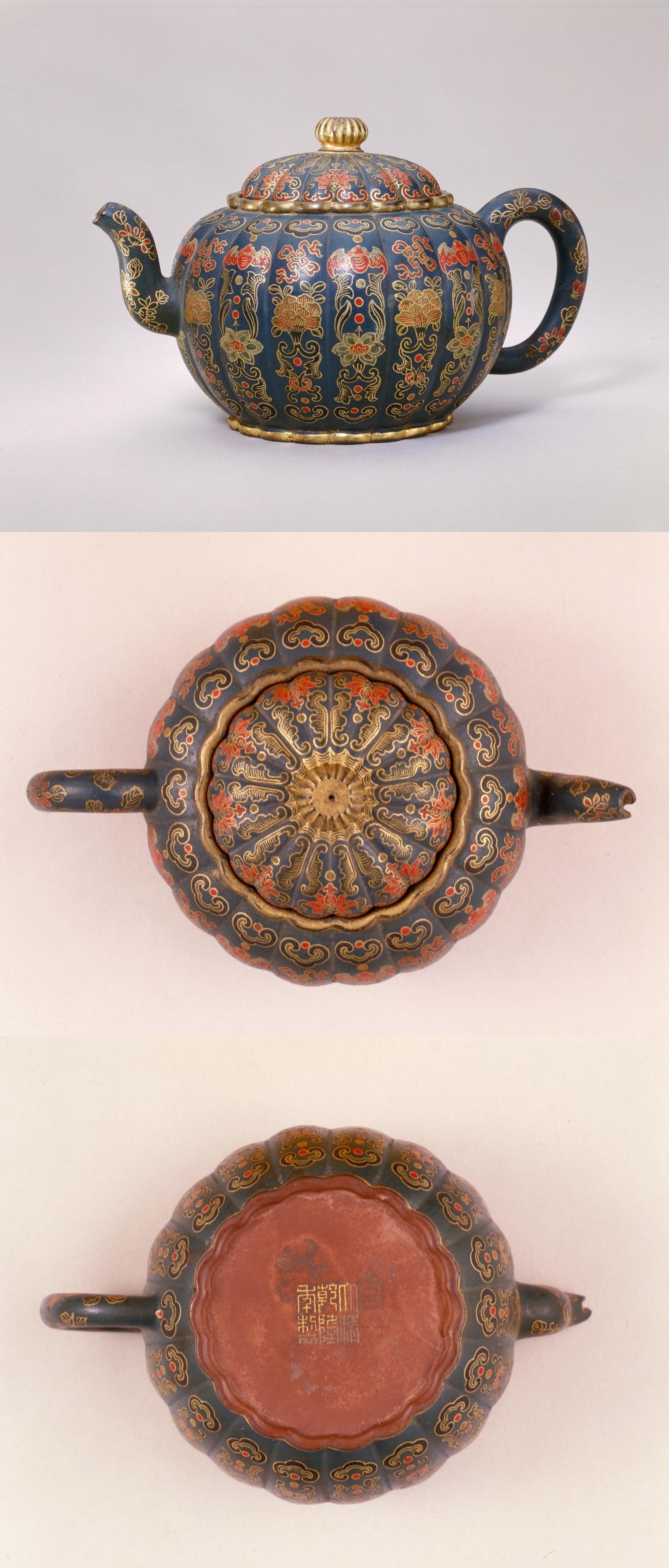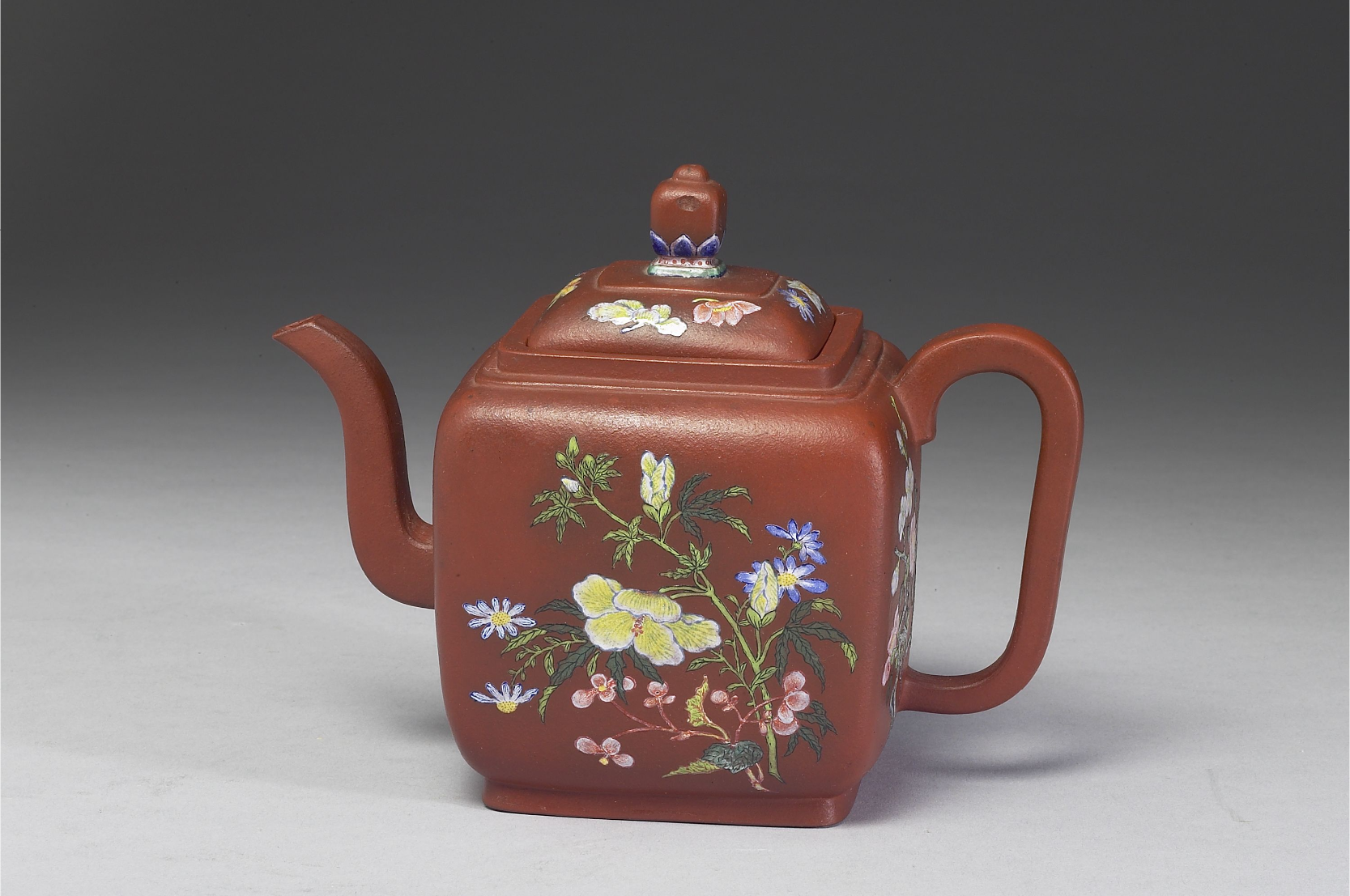 The most representative imperialZisha teapots from the Kangxi period are those decorated with enamel paints, fully embodying the privileged and monopolistic nature of court production. These were the first painted Yixing teapots in history. While painted Yixing teapots are common today, they were utterly inaccessible to the public then, regardless of wealth. Enamel painting was the only technique allowing a full palette of colors on ceramics at the time. The technology was held by a handful of painters within the palace (mostly European missionaries), and the pigments were imported and extremely precious.